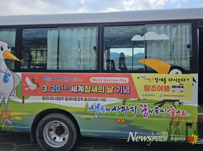 뉴스펀치 김윤걸 기자 | 울산시는 오는 3월 20일 ‘세계 참새의 날’을 맞아 ‘참새 탐조 여행버스’를 3월 18일부터 3월 25일까지 운행한다고 밝혔다.