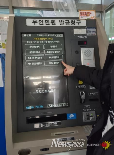 뉴스펀치 박상훈 기자 | 서울 강북구는 주민들이 보다 편리하게 민원서류를 발급받을 수 있도록 관내 무인민원발급기 4개소에 가족관계등록사항별증명서 발급 서비스를 추가했다고 밝혔다.