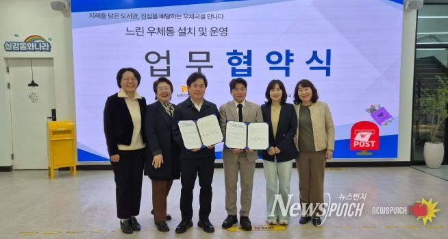 뉴스펀치 정홍균 기자 | 김제시립도서관은 지난 18일 도서관 상상누리터 1층에서 김제시 성덕우체국과 함께 독서문화 진흥을 위한 ‘느린우체통’ 설치 및 운영 협약을 체결했다고 밝혔다.