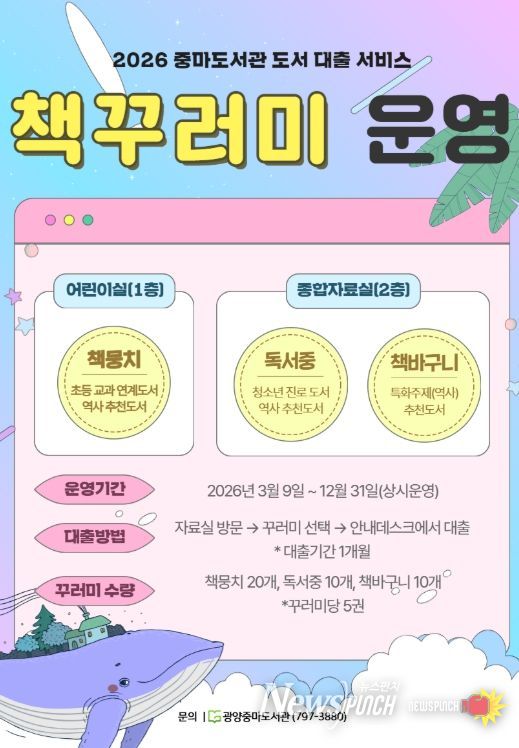 뉴스펀치 김용희 기자 | 광양중마도서관은 시민들의 독서활동을 지원하고 지역사회에 책 읽는 문화를 확산하기 위해 지난해에 이어 ‘맞춤형 책 꾸러미’ 서비스를 운영한다.