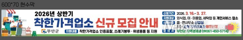 신청 대상은 무안군에서 실제 운영 중인 외식업, 세탁업, 이·미용업, 숙박업 등 개인서비스 업종이다.