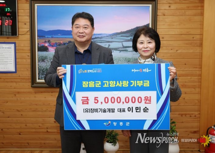 뉴스펀치 김용희 기자 | 장흥군은 지난 17일, 이민순 유한회사 창비기술개발 대표가 고향사랑기부금 500만원을 기탁했다고 밝혔다.