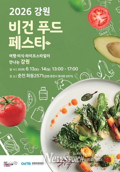 뉴스펀치 조평훈 기자 | 강원관광재단은 오는 6월 춘천에서 개최 예정인 「2026년 강원 비건 푸드 페스타」의 사전 홍보를 위해, 3월 27일부터 29일까지 3일 간 서울무역전시컨벤션센터 세텍(SETEC)에서 열리는 「제10회 비건페스타(채식축제)·그린페스타(친환경축제)」에 참가해 홍보부스를 운영한다고 밝혔다.