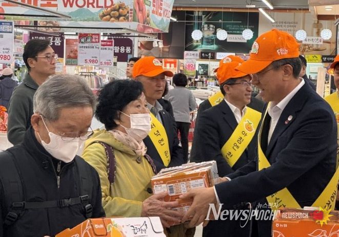 뉴스펀치 김용희 기자 | 오순문 서귀포시장은 20일 서울 도봉구 하나로마트 창동점에서 열린 ‘제주 행복 만감 페스타’ 판촉 행사에 참석하여 육지부 소비자들을 대상으로 제주 만감류 소비촉진 활동을 전개했다.