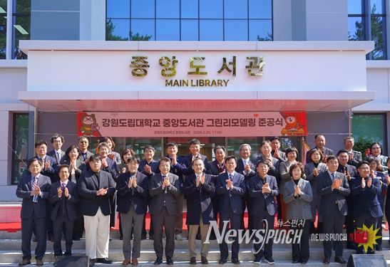 뉴스펀치 조평훈 기자 | 강원도립대학교는 20일 오전 11시, 대학 내 중앙도서관에서 ‘중앙도서관 그린리모델링 준공식’을 개최하고, 친환경 스마트 교육 환경을 기반으로 한 지역 상생 복합문화공간의 본격적인 운영을 알렸다.