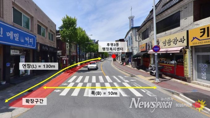 뉴스펀치 조평훈 기자 | 춘천 후평동 보안사거리에서 세실사거리 사이 일부 구간 도로가 확장된다.