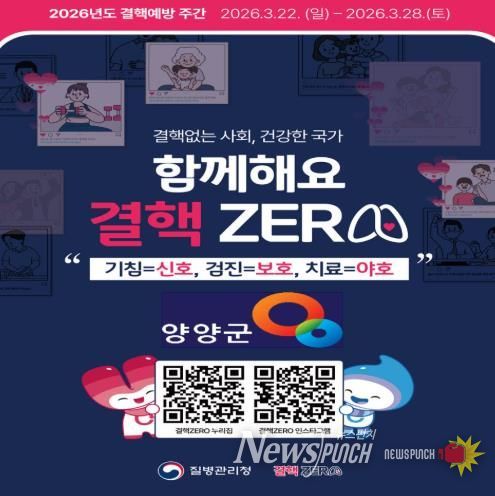 군은 이번 캠페인을 기점으로 지역 주민의 결핵 예방 인식을 높이고 검진 참여를 확대해, ‘결핵 없는 건강한 양양’을 만드는 데 행정력을 집중할 계획이다.