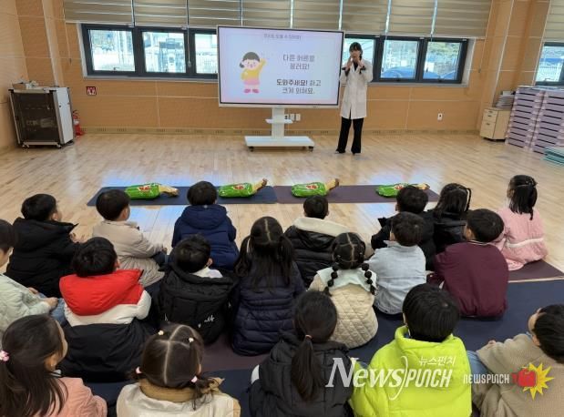 뉴스펀치 정홍균 기자 | 완주군 행복완주 건강생활지원센터가 관내 유치원생을 대상으로 ‘튼튼쑥쑥 어린이 안전 교실’을 운영하고 있다.