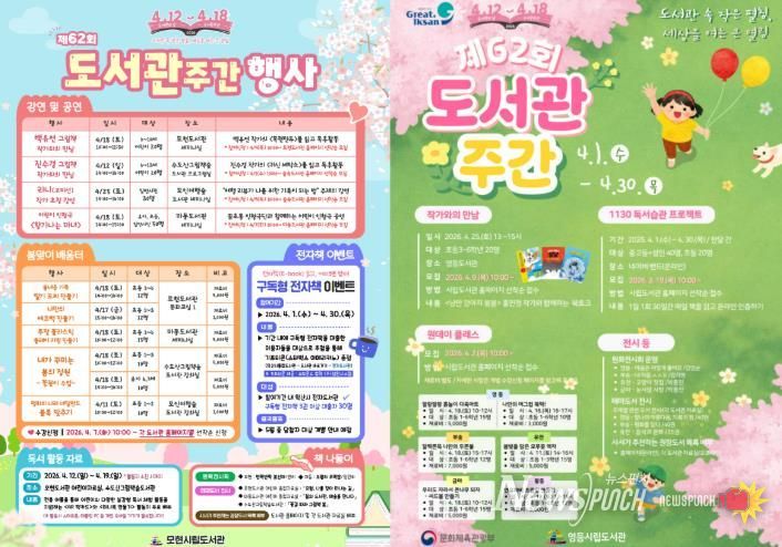 뉴스펀치 정홍균 기자 | 익산시가 4월 한 달간 다채로운 독서문화 행사를 운영하며 시민들의 일상 속 독서 확산에 나선다.
