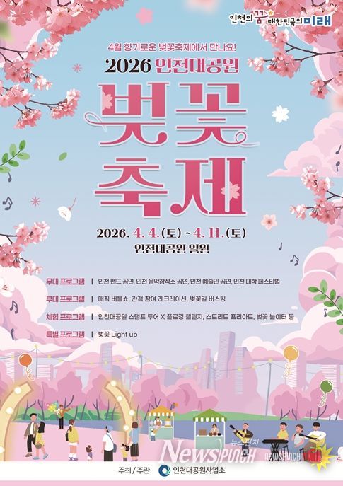 이번 축제는 인천을 대표하는 벚꽃 명소인 인천대공원에서 개최되며, 기존 2일간 진행되던 행사에서 한층 확대된 ‘벚꽃맞이 주간 행사’로 기획됐다. 벚꽃 개화기간 동안 공원을 찾는 시민들이 봄의 정취를 더욱 여유롭게 만끽할 수 있도록 8일간 운영된다.