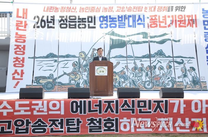 뉴스펀치 정홍균 기자 | 정읍시농민회가 본격적인 영농철을 맞아 지난 26일 정읍천 어린이축구장에서 ‘2026년 정읍농민 영농발대식 및 풍년기원제’를 성황리에 개최하고 올 한 해 대풍을 기원했다.
