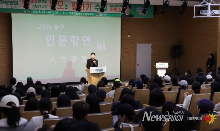뉴스펀치 정홍균 기자 | 인천시 중구는 지난 26일 영종복합문화센터 대강당에서 아들 교육 전문가 최민준 자라다 남아미술연구소 소장을 초빙해 ‘2026 중구 인문향연’을 성황리에 개최했다.