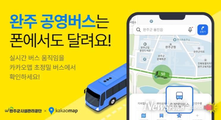 뉴스펀치 정홍균 기자 | 완주군시설관리공단이 지난 26일부터 모바일 지도 앱인 ‘카카오맵’을 통해 완주군 마을버스의 실시간 이동 정보를 제공하며 대중교통 이용 편의를 한 단계 높이고 있다.