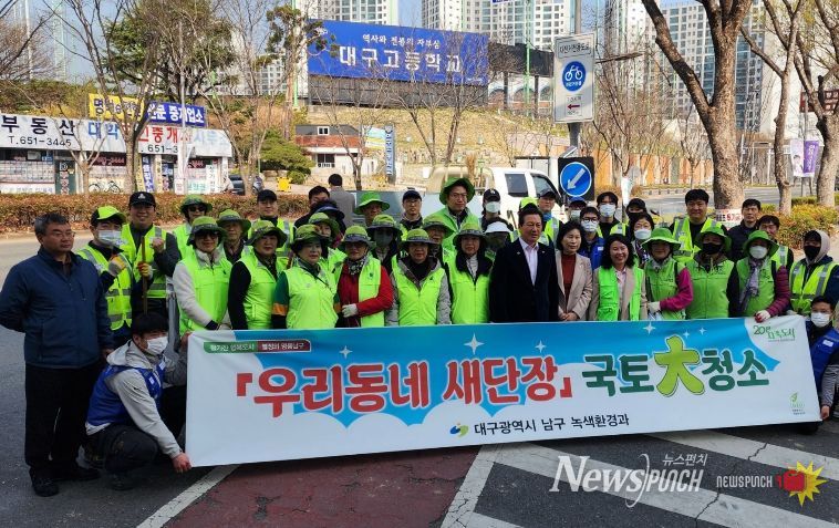 뉴스펀치 조평훈 기자 | 대구 남구는 지난 3월 18일부터 주민들이 활기찬 봄을 만끽할 수 있도록 중앙대로 화단과 무단투기 취약지를 집중 청소하는 2026년 새봄맞이 국토대청소 및 우리동네 새단장에 나섰다.
