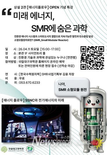 뉴스펀치 조평훈 기자 | 국립대구과학관은 오는 4월 ‘과학의 달’을 맞아 시민들의 과학에 대한 이해를 높이고 과학문화 확산에 기여하고자 ‘미래에너지, 소형모듈원자로(SMR)에 숨은 과학’ 특별 강연을 개최한다.