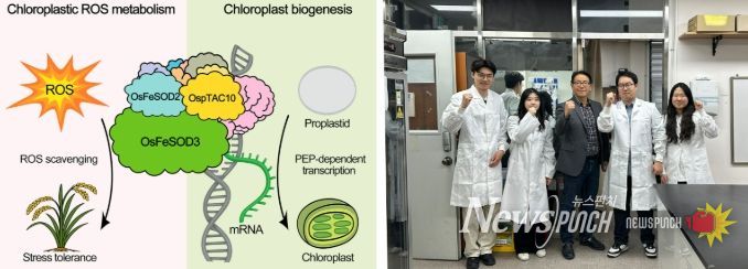 연구팀은 중요 식량작물인 벼를 활용한 연구를 통해 OsFeSOD3 단백질이 엽록체 유전자 발현을 담당하는 PEP(Plastid-encoded RNA polymerase) complex의 구성 요소로 작용하며, 엽록체 발달을 조절하는 핵심 인자임을 규명했다.