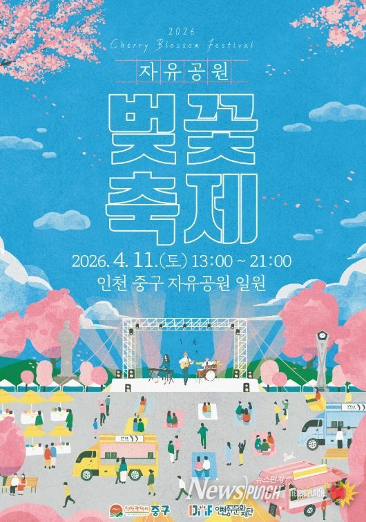 뉴스펀치 정홍균 기자 | (재)인천중구문화재단은 새봄을 맞이해 오는 4월 11일 인천의 대표적인 벚꽃 명소인 자유공원 일대에서 ‘2026년 자유공원 벚꽃축제’를 개최한다고 밝혔다.