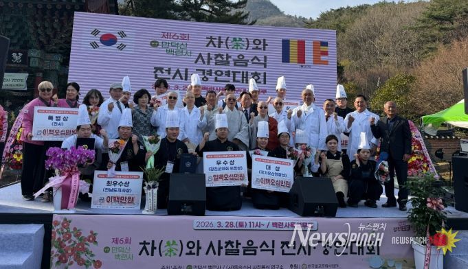 뉴스펀치 김용희 기자 | 천년고찰 강진 백련사에서 지난 28일 열린 제6회 백련사 차와 사찰음식 경연대회가 성황리에 마무리됐다.