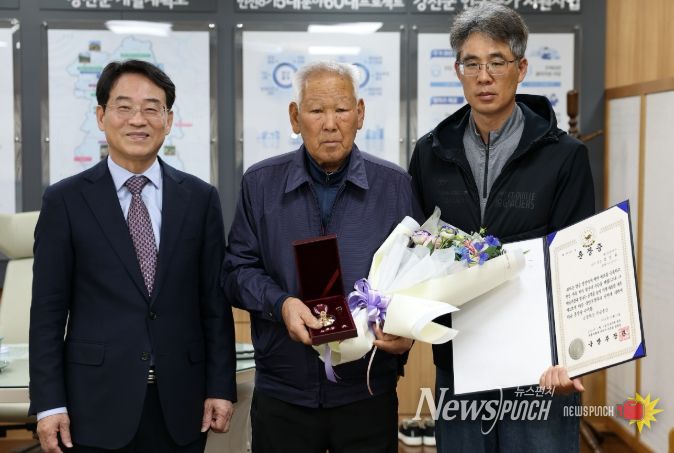 뉴스펀치 김용희 기자 | 강진군이 지난 25일 6.25참전유공자 유족에게 화랑무공훈장을 전달했다.
