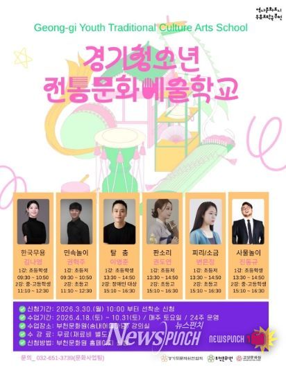 뉴스펀치 박상훈 기자 | 부천문화원은 청소년들의 전통문화 참여 기회를 확대하고 경기지역 전통민속예술의 지속 가능한 전승 기반 마련을 위한 ‘2026 경기청소년전통문화예술학교’ 참여 학생을 모집한다.