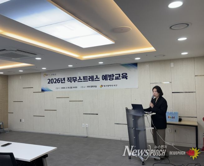 뉴스펀치 조평훈 기자 | 대구 서구는 지난 30일 서구청 지하 중회의실에서 서구청 소속 근로자들의 정신건강 증진 및 쾌적한 근로환경 조성을 위한 ‘직무스트레스 예방 교육’을 실시했다.