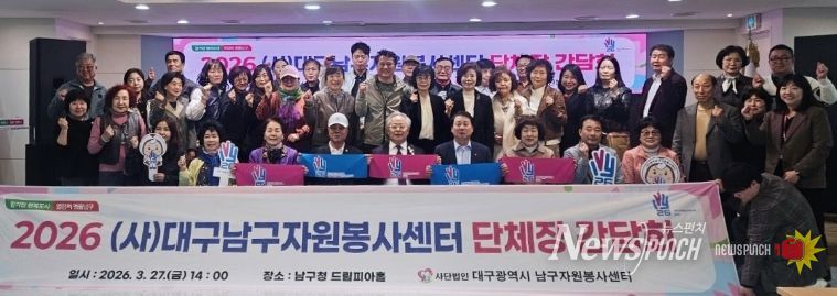 뉴스펀치 조평훈 기자 | (사)대구남구자원봉사센터(이사장 이흥우)는 지난 27일 남구청 드림피아홀에서 ‘2026 자원봉사 단체장 간담회’를 개최했다.