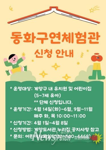 뉴스펀치 정홍균 기자 | 인천광역시교육청계양도서관은 4월 1일부터 계양구 관내 어린이집과 유치원(5~7세)을 대상으로 ‘동화구연 체험관’에 참여할 기관을 모집한다.