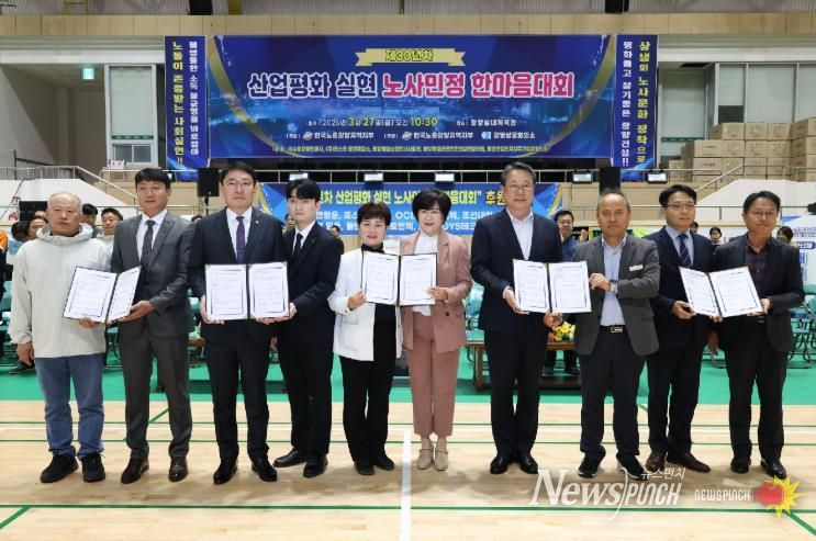뉴스펀치 김용희 기자 | 광양시는 지난 27일 광양실내체육관에서 ‘제30년차 산업평화 실현 광양시 노사민정 한마음대회’를 열고 노사민정 간 화합과 협력 강화에 나섰다고 밝혔다.