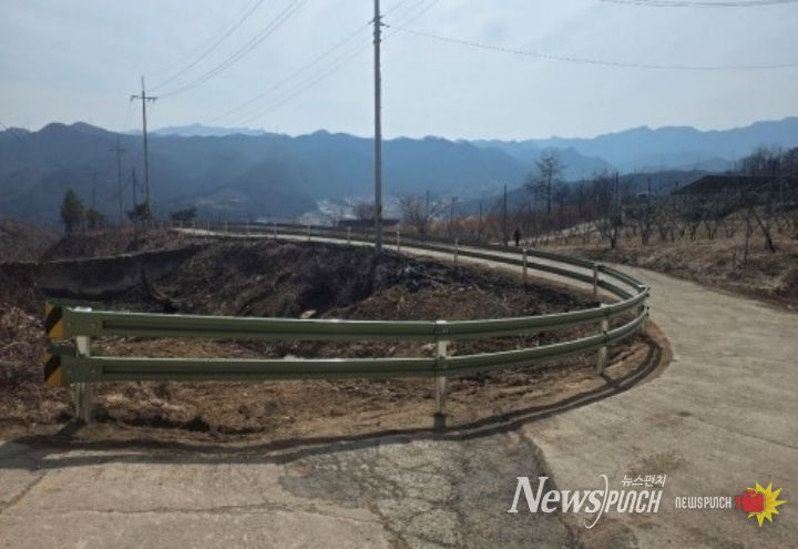 군 건설과는 산불 피해로 차량 추락 등 안전사고 위험이 우려되는 지품면 삼화리 일원을 대상으로 지난 2월 말 공사에 착공했으며, 철저한 공정 관리를 통해 한 달여 만인 3월 말 모든 복구 작업을 완료했다.