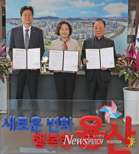 뉴스펀치 박상훈 기자 | 서울 용산구가 지난 30일 구청장실에서 한국토지주택공사 서울지역본부 용산사업단, 용산일레븐과 함께 ‘유엔사부지 공원·녹지 조성 수준 향상을 위한 업무협약’을 체결했다고 밝혔다.