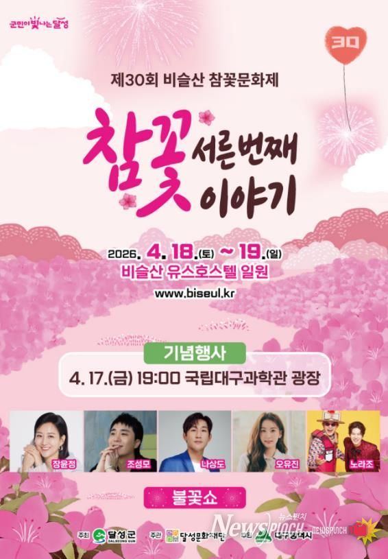 최재훈 달성군수는 “제30회를 맞이한 비슬산 참꽃문화제가 전국의 방문객이 함께 즐기는 달성군 대표 봄축제로 자리매김할 수 있도록 다채로운 프로그램을 준비했다”며, “많은 분들이 축제장을 찾아 봄의 정취와 수준 높은 문화공연을 함께 즐기시길 바란다”고 전했다.