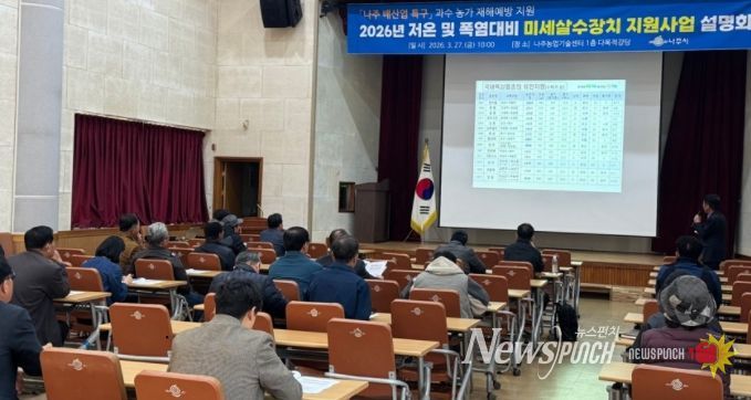 나주시는 지난 3월 27일 보조사업 대상 농가와 농협 관계자를 대상으로 ‘2026년 저온 및 폭염 대비 미세살수장치 지원사업’ 교육 설명회를 개최했다고 31일 밝혔다.