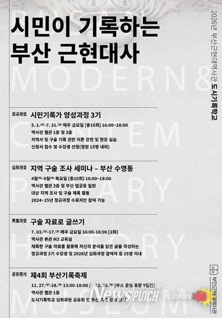 뉴스펀치 김윤걸 기자 | 부산근현대역사관은 2026년 시민 대상 기록 프로그램의 일환으로 '도시기록학교'를 운영한다고 밝혔다.