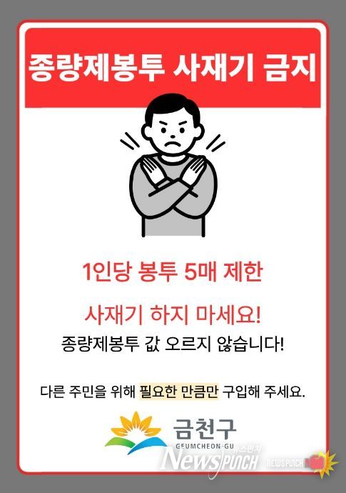 뉴스펀치 박상훈 기자 | 금천구는 최근 종량제봉투 수급 불안으로 사재기 조짐이 일어남에 따라 주민들에게 과도한 구매 자제를 당부했다고 밝혔다.