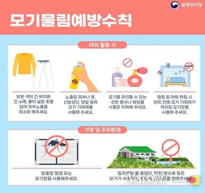 가정에서는 방충망을 점검하고 집 주변의 물웅덩이, 막힌 배수로 등은 제거할 필요가 있다.