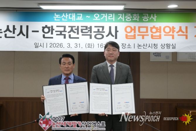 뉴스펀치 이현승 기자 | 논산시는 31일 시청 상황실에서 한국전력공사(KEPCO)와 ‘논산대교~오거리 전주 지중화 사업’ 추진을 위한 업무협약을 체결했다.