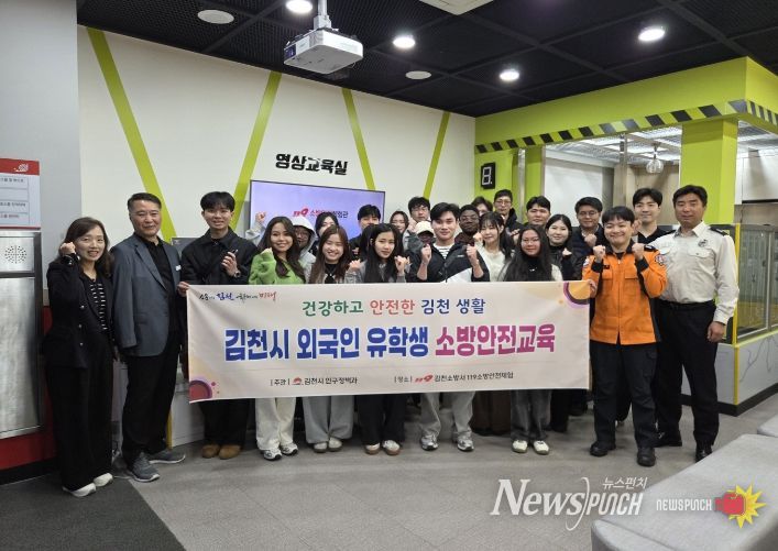뉴스펀치 박세훈 기자 | 김천시는 외국인 유학생들의 안전의식 향상과 위기 대응 능력 강화를 위해 지난 3월 31일(화) 김천소방서 119소방안전체험관에서 김천대학교 외국인 유학생 20명을 대상으로 ‘외국인 유학생 소방안전교육’을 실시했다.