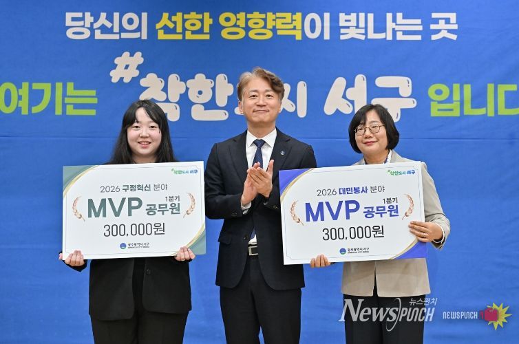 뉴스펀치 김용희 기자 | 광주광역시 서구가 2026년 1분기 ‘MVP 공무원’으로 이다영 주무관(안전총괄과)과 정미영 주무관(보건위생과)을 각각 선정했다.