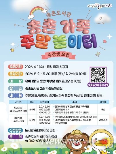 뉴스펀치 이현승 기자 | 대전 대덕구 송촌도서관이 5월 가정의 달을 맞아 가족 참여형 프로그램을 운영한다.