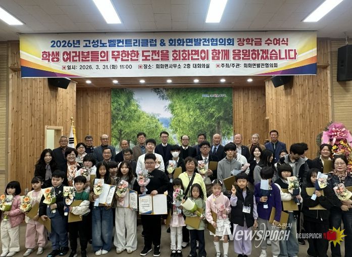 뉴스펀치 박세훈 기자 | 고성군 회화면발전협의회(회장 권택열)에서는 3월 31일 11시, 회화면사무소 대회의실에서 2026년 노벨컨트리클럽 · 회화면발전협의회 장학증서 수여 행사를 개최했다.