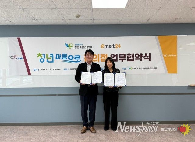 뉴스펀치 정홍균 기자 | 인천광역시는 4월 1일 청년들이 일상에서 마음건강 서비스를 보다 쉽게 접할 수 있도록 이마트24와 함께 ‘청년마음으로 편의점’ 사업 확대를 위한 업무협약을 체결했다고 밝혔다.
