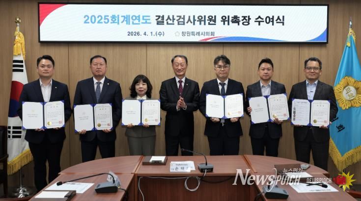 뉴스펀치 박세훈 기자 | 창원특례시의회는 1일 ‘2025회계연도 결산검사위원’을 위촉했다. 결산검사 대표위원은 백승규 의원이 맡았다.