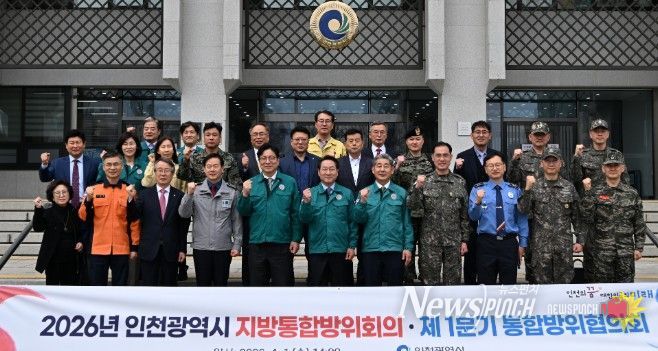 뉴스펀치 정홍균 기자 | 인천광역시는 4월 1일 시청 인천데이터센터(IDC) 재난영상회의실에서 ‘2026년 지방통합방위회의 및 제1분기 통합방위협의회’를 개최했다고 밝혔다.