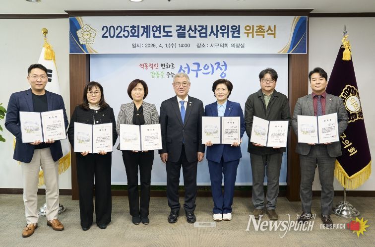 뉴스펀치 이현승 기자 | 대전 서구의회는 1일 의장실에서 2025회계연도 결산검사위원 위촉식을 열고 결산검사위원 6명에게 위촉장을 수여했다.