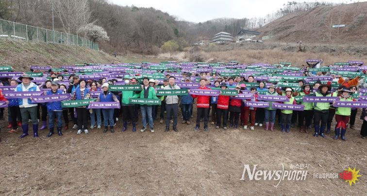 뉴스펀치 이현승 기자 | 청주시는 제81회 식목일(4.5.)을 기념하기 위해 1일 상당구 미원면 쌍이리 산7-1 일원에서 ‘2026년 식목 행사’를 개최하고 탄소중립 실천 의지를 다졌다.