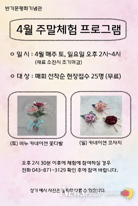 뉴스펀치 이현승 기자 | 음성군 제8대 유엔사무총장 반기문 평화기념관에서는 관람객을 위한 4월 주말 무료 체험 프로그램을 운영한다.
