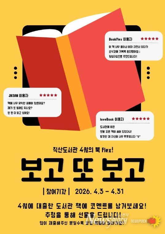 뉴스펀치 이현승 기자 | 천안시 직산도서관은 4월 ‘북 플렉스(Flex)’ 프로그램으로 ‘보고 또 보고’를 운영한다고 2일 밝혔다.