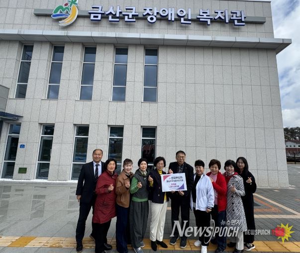 뉴스펀치 이현승 기자 | 한국부인회 금산지회(회장 김영자)는 지난 1일 금산군장애인복지관(관장 허명환)에 지역 장애인을 위한 후원금 100만 원을 쾌척했다.