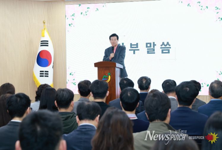 뉴스펀치 이현승 기자 | 박범인 금산군수는 지난 1일 군청 다용도회의실에서 열린 간부회의에서 “꽃피는 춘삼월은 봄꽃이 만개하는 시기”라며 “꽃의 계절을 맞아 열리는 3색 꽃축제 개최 준비를 철저히 해달라”고 지시했다.