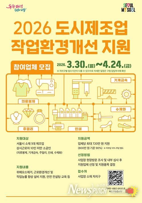 뉴스펀치 박상훈 기자 | 서울시가 2026년에도 열악한 제조환경의 안전과 작업능률을 높이기 위해 ‘도시제조업 작업환경 개선’ 사업을 추진한다.